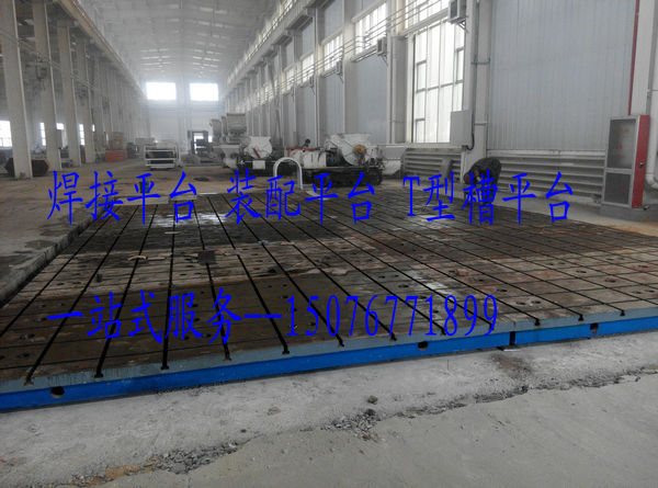 我公司為山西某國(guó)有企業(yè)制造的焊接平臺(tái),裝配平臺(tái)安裝完成.該鑄鐵平臺(tái)規(guī)格:2000*4000*300mm 共計(jì)18件。表面橫豎開有T型槽,可使用M20和M24的螺栓。T型槽平臺(tái)采用地腳螺栓和頂絲的固定調(diào)節(jié)方式。